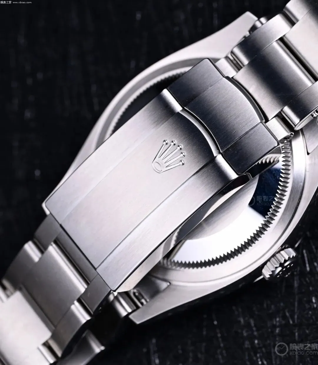 蚝式恒动,配劳力士蚝式表链、蚝式表扣。现在,新款的蚝式恒动,表扣里有和日志型一样的折叠微调,折叠最后一节链节,进行微调长度。这在老款的蚝式恒动中是没有的。虽然蚝式恒动,看上去外观都很相似,但配置的升级、细节的调整,一直是在进行的。