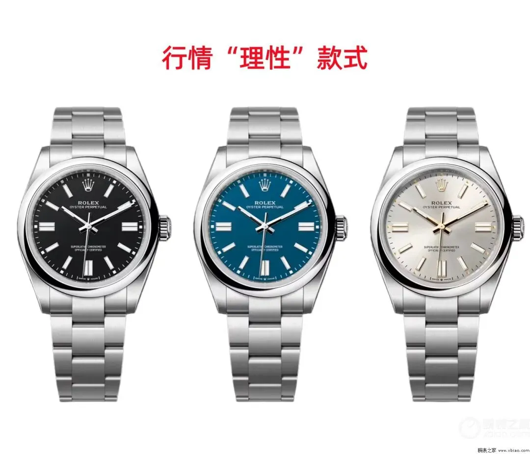 对于大部分玩家来说,日常戴表,蚝式恒动黑色、蓝色、银色,这些常规配色,经典耐看,同时行情理性。在公价范围的价格,即5万级别,是目前市面上劳力士的入门价格,是最便宜的劳力士男表,正常入手,没毛病。