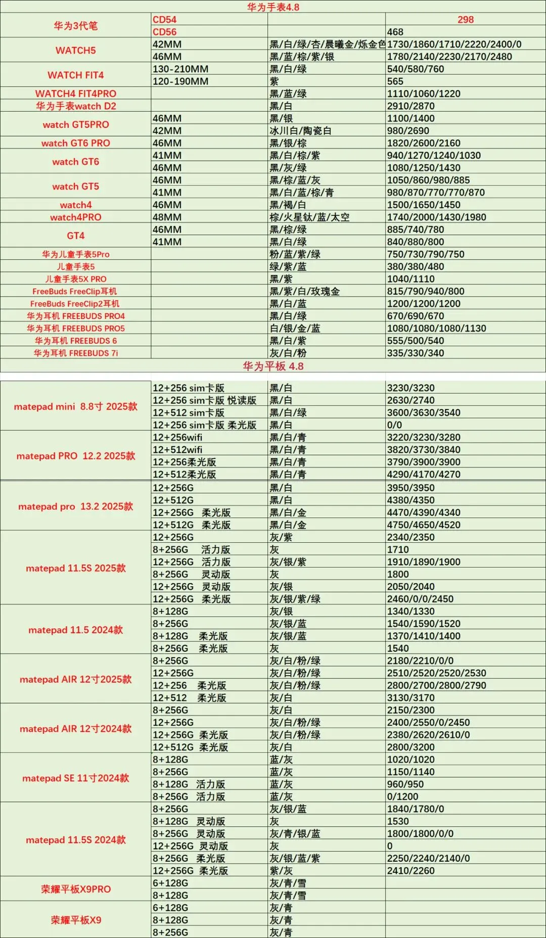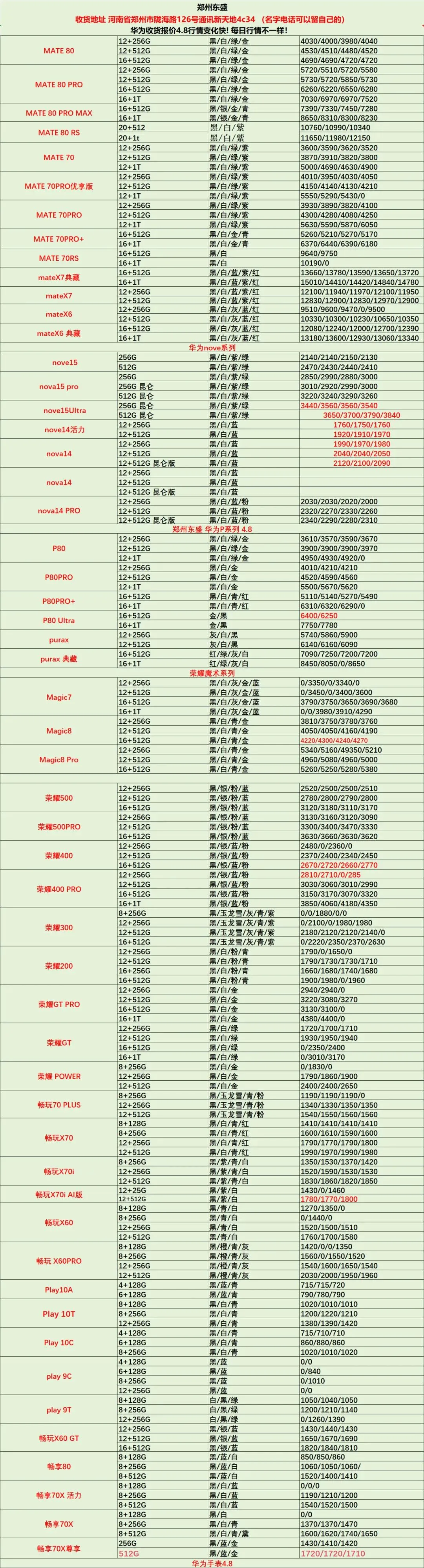 今日手机行情4月8日-最新手机价格表查询 荣耀 手机 平板 穿戴 生态链系列产品批发参考价