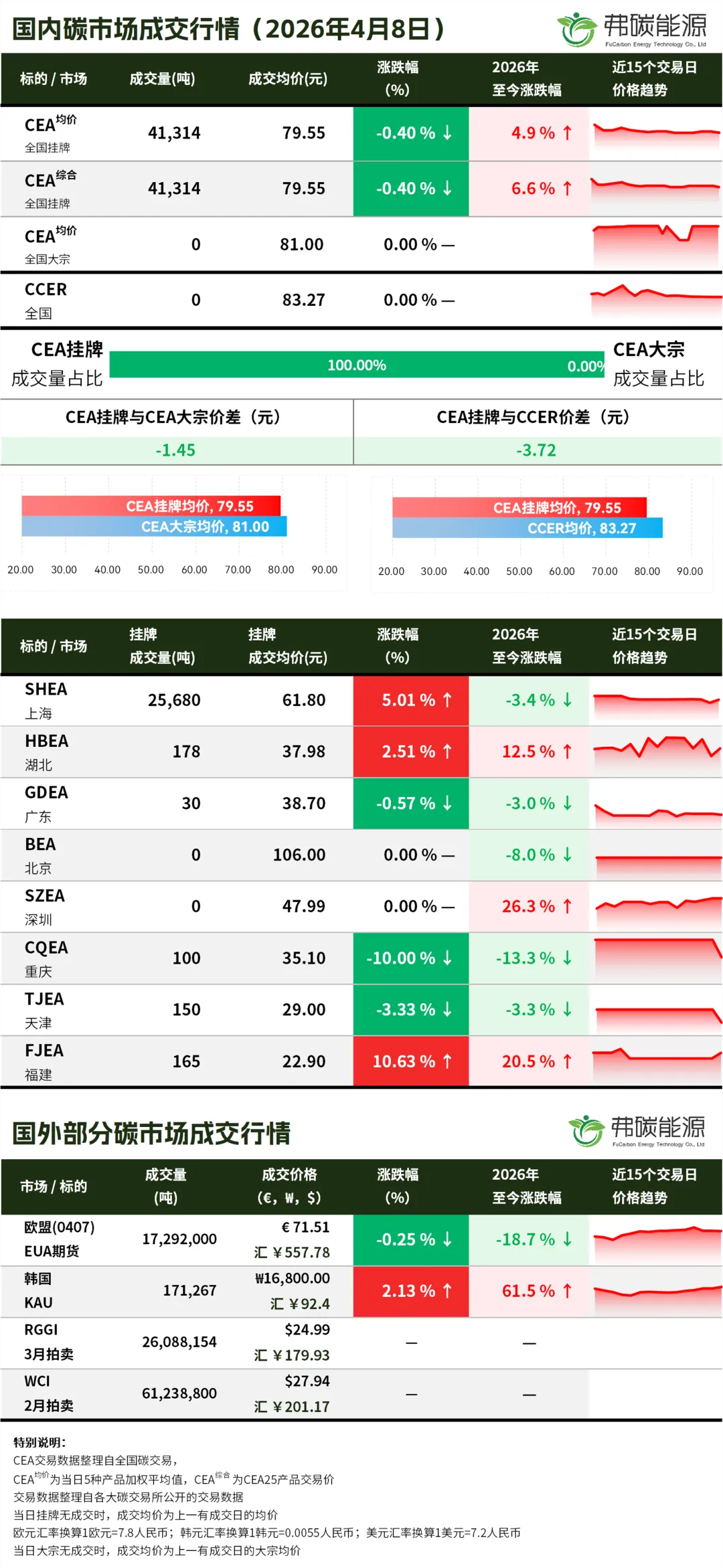碳市行情26.4.8 | CEA挂牌成交4.1万吨,成交均价下跌...