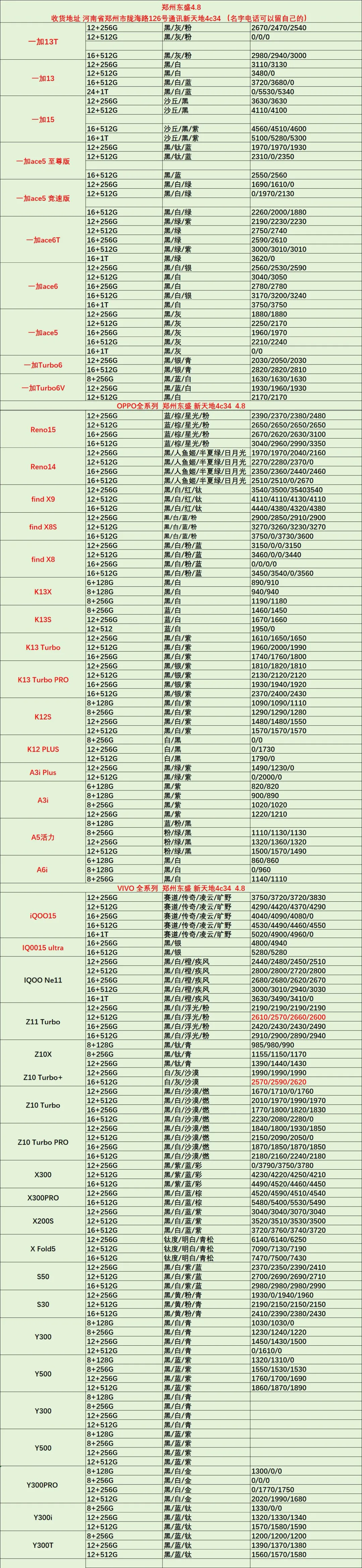>郑州东盛通讯新天地4.8号行情