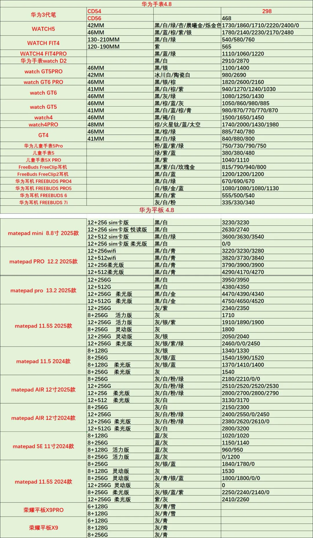 今日手机行情4月8日-最新手机价格表查询 华为 手机 平板 穿戴 智能家居 生态链系列产品批发参考价