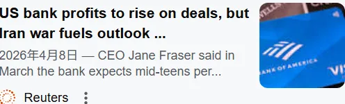 - 信贷质量担忧:分析师指,冲突长期化,高企能源成本侵蚀企业利润削弱消费支出。机构预计银行需拨备更多贷款损失准备金,应对潜在违约风险。