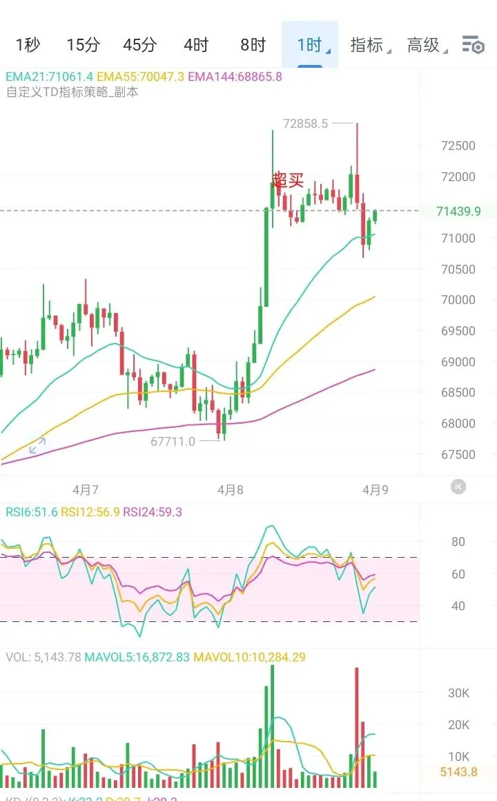 昨夜急跌属于典型的“洗盘式”回调结构,多头迅速收复部分失地,说明市场承接意愿较强。后续操作上可重点关注回踩71000-71200区间的低多机会,防守放在70600下方,上方目标先看71800-72000区域。