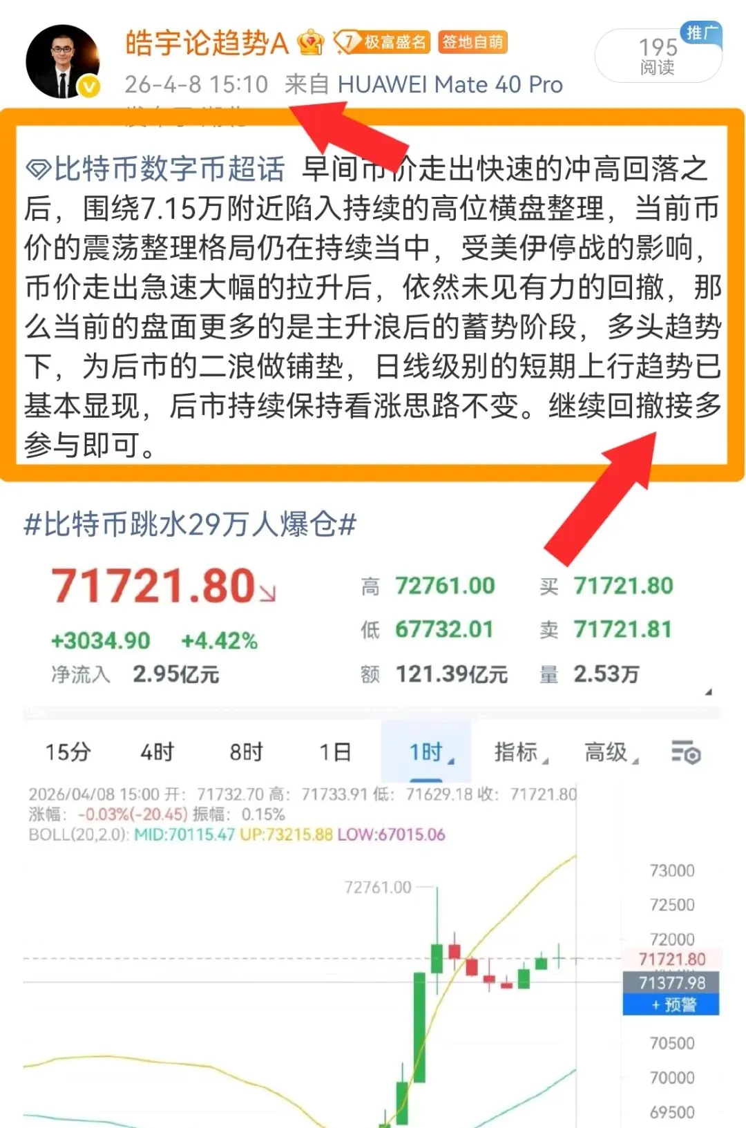 日内行情即将走完,日内币价整体趋势依旧还是围绕在7.15万关口附近持续拉扯整理,继昨日受消息面影响暴力拉升后有收小阴线回调修复的趋势,晚间受美股的刺激,币价先扬后抑的走法也是再次符合我们的预期,回顾日内实盘,晚间直播间现价提示的7.15万多单在7.26万再次精准锁定千点以上的利润,看涨的思路策略提示了一天,如果说这样的趋势结构你都不能做到很好的把握,别人早已拿捏波段稳稳拿下利润退场,而你还在迷茫于追涨杀跌的痛苦之中,那么不妨直接跟上皓宇的节奏,带你快速走出当前的窘境。