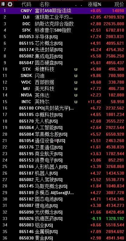 今天大A存储芯片、CPO应该会继续大涨。