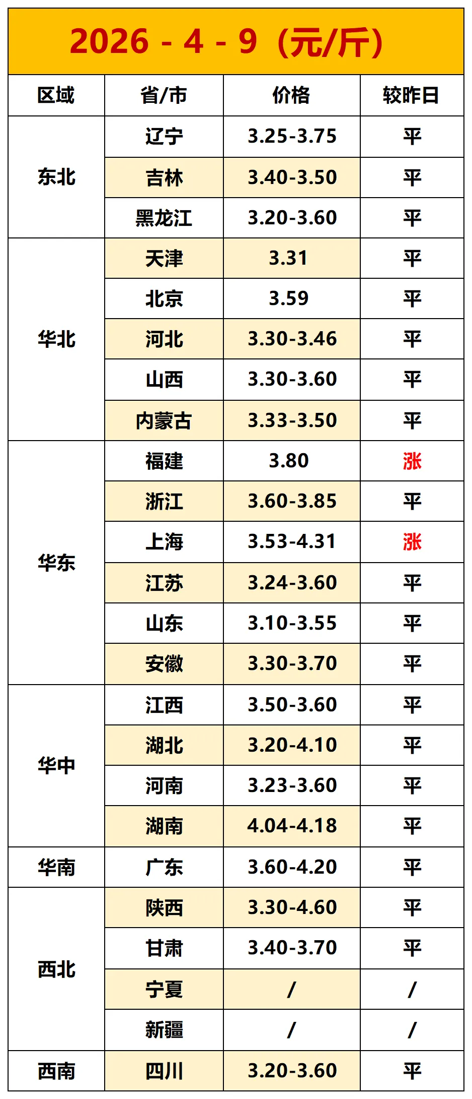 2026年4月9日全国各地鸡蛋报价