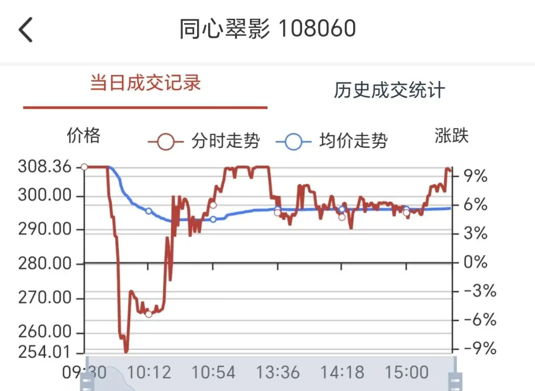 《同心翠影》:新票,今天首次打开,换手率1.3%,收涨9.51%,以获利盘出逃为主,主力筹码再度集中,预计在震荡整理后继续走强。