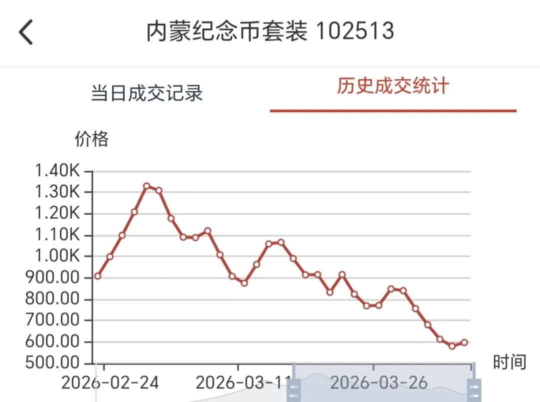 《内蒙纪念币套装》:冲高回落,小幅反弹,短线抛压依旧是非常大,弱势反弹的行情,缝高减仓为主。