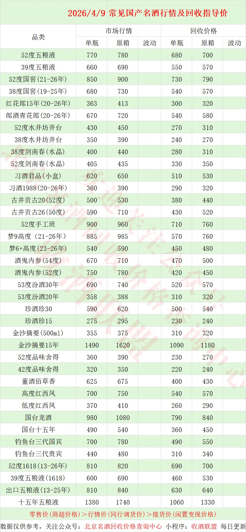 也称之为同行调货价,酒商之间互相调货的价格,市场价与回收价均以行情价为基础。