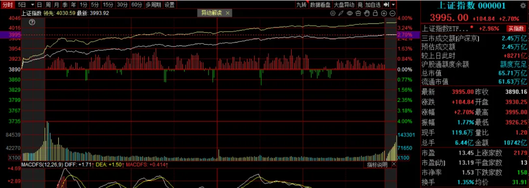 市场集体反弹,沪指百点长阳,创业板指涨近6%、科创50指数涨超6%。全市场超5100只个股上涨。