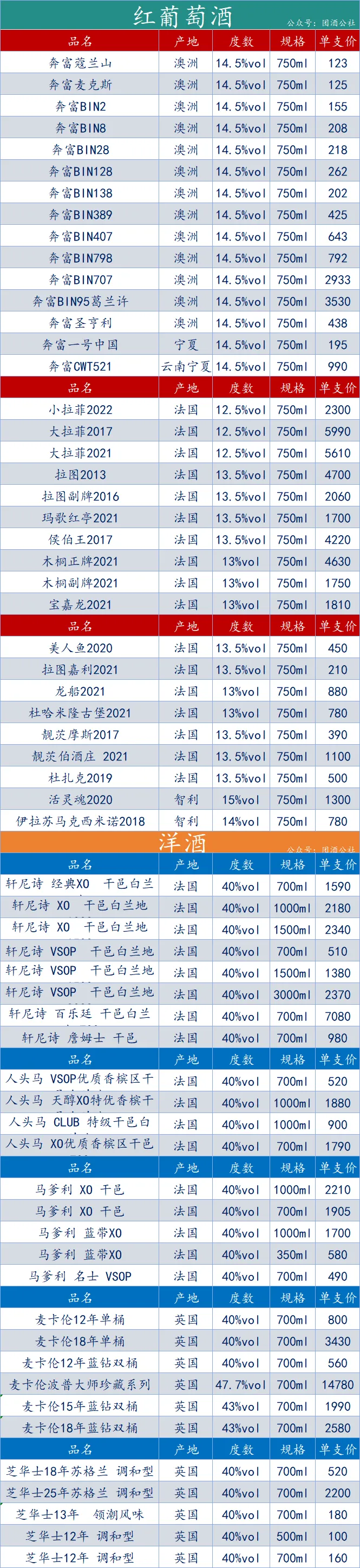 亲爱的酒友们,以上是我们整理的部分品牌数据,包括奔富、拉菲、张裕以及麦卡伦等,这些信息均来源于网络,仅供您参考。由于地区间的物流费用与经营成本存在差异,实际报价或许会略有不同。如果您有任何疑问,请随时与我们联系,期待与您的交流!