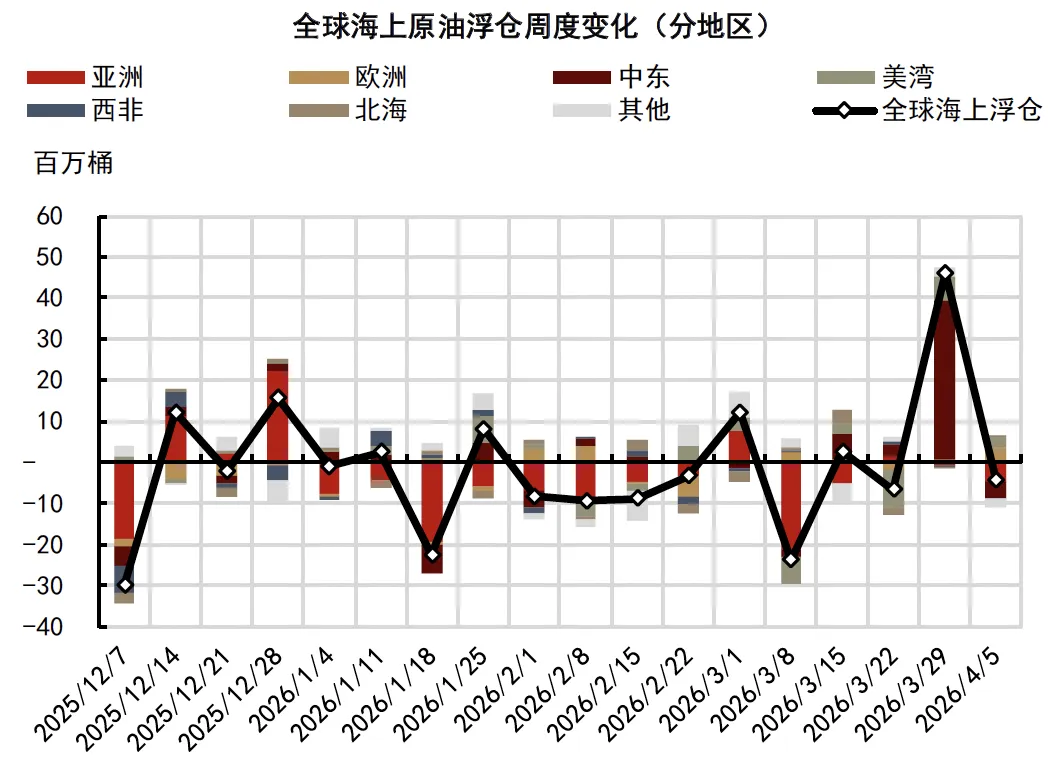 图表6:亚洲地区浮仓减少,中东浮仓累积