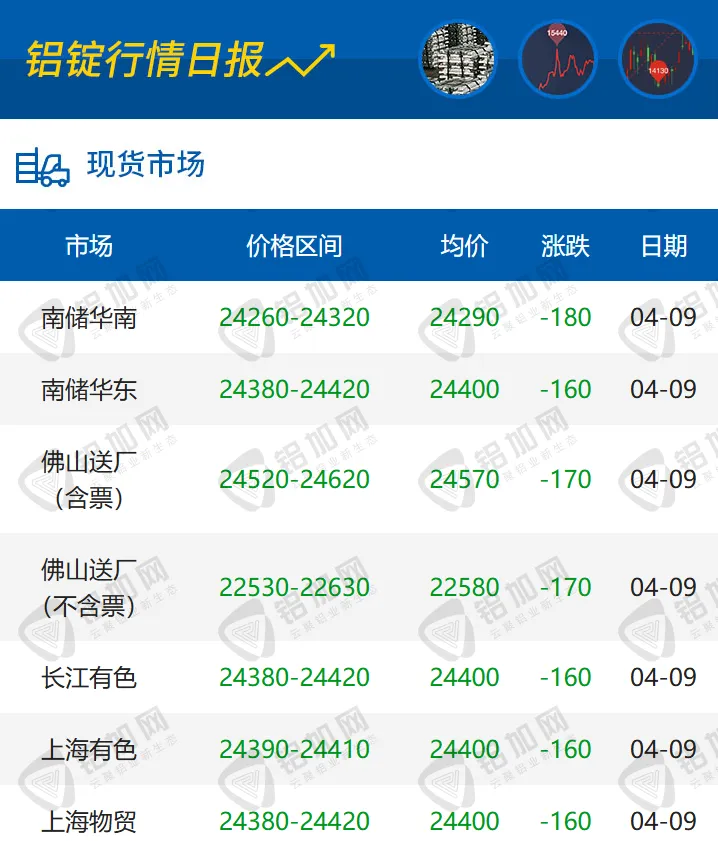 >跌!04.09 每日铝锭行情报价