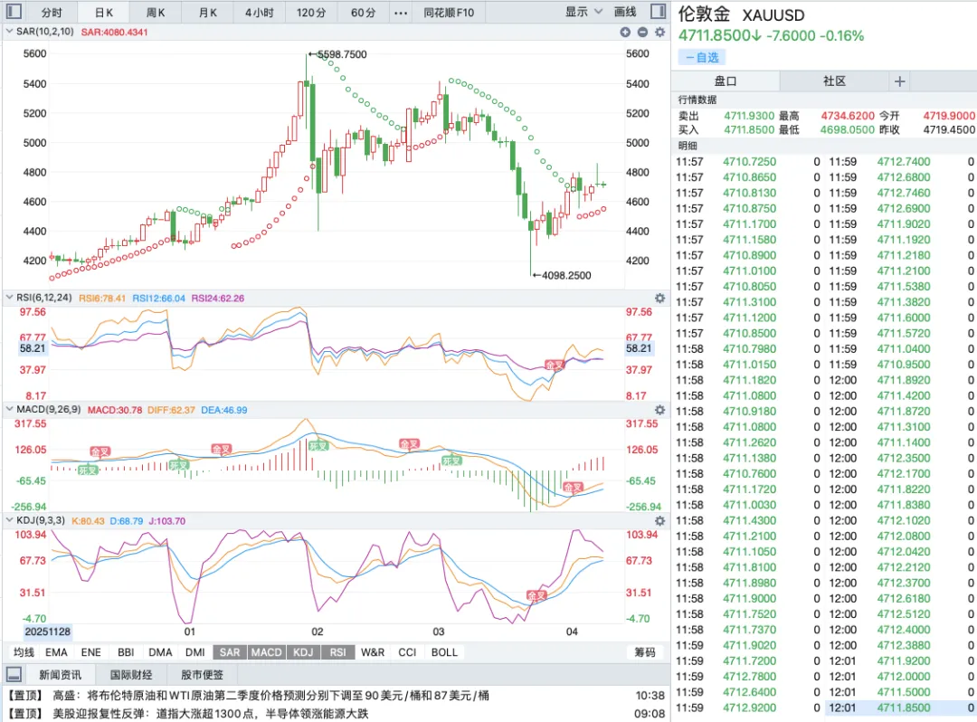 而4700美元/盎司这个位置,刚好是前期多次撑住价格的强支撑位,就像一个坚实的地板,价格跌到这里,很多资金觉得价格到位了,纷纷进场抄底买多,买盘力量重新起来,价格就企稳回升,最后收在了4719美元/盎司,走完了这一轮完整的过山车行情。