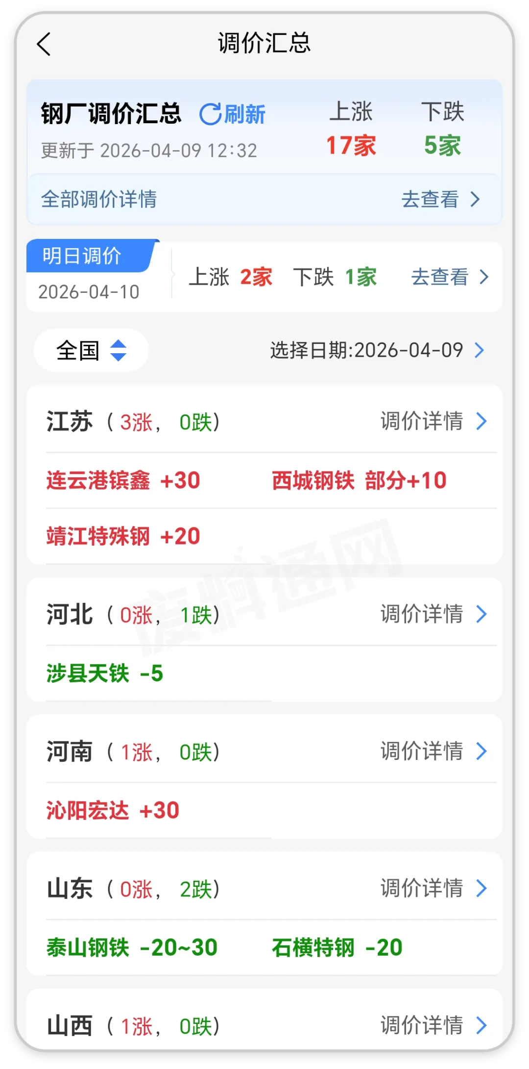 4月10日00:00时起,江苏【徐州金虹】钢铁所有料型价格统一上调20元。最新价:钢刨花一级2180,钢刨花二级2170,数控一级2150,数控二级2140,普通屑一级2110,普通屑二级2100,原厂纯净压块2150,油屑压饼2110,长丝(原厂)2080,不含税