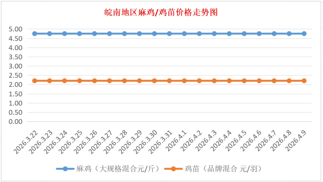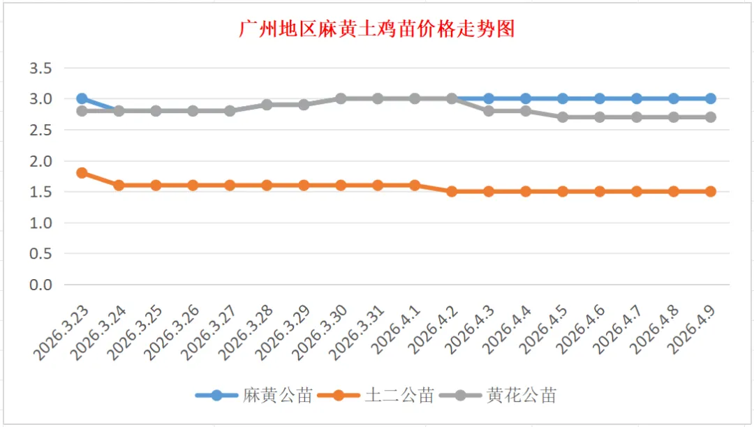 品牌新陂麻:价格稳定,到户价公苗4.50元/羽,稳。
