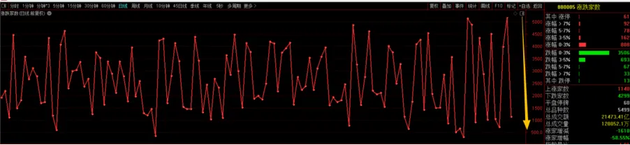 上涨家数1140家,下跌家数为4299家,最近行情是真的难做,情绪反转的好快。