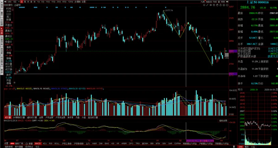 目前看一中枢回调,MACD 目前是有背离的。如果不考虑外部情绪影响,明天应该会反抽一笔。