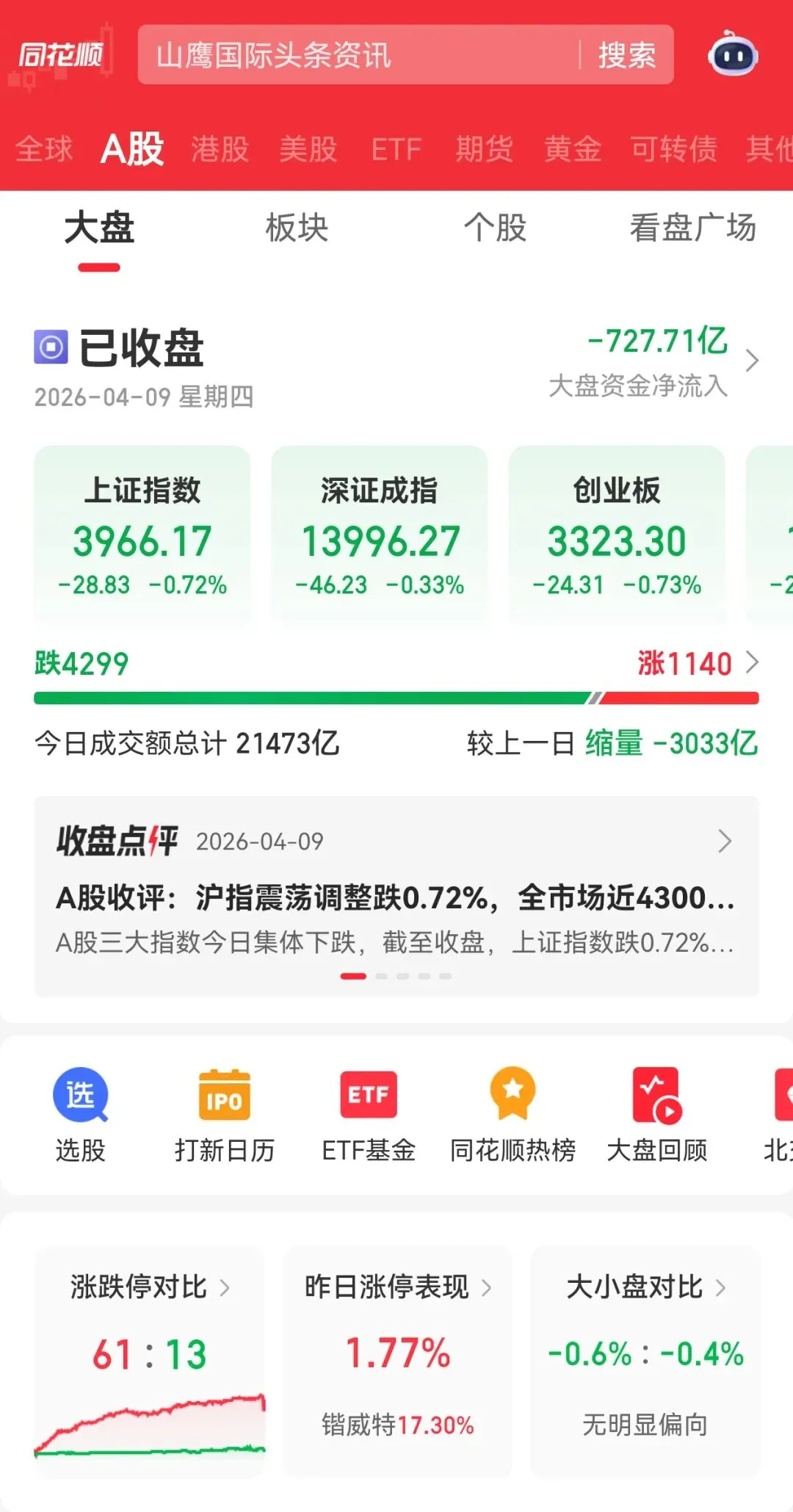 当前位置:首页>行情>2026年4月9日A股市场行情全面解读