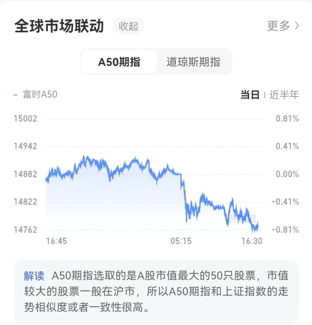 3. 外围联动影响:A50期指同步跳水,外资情绪传导加剧A股调整