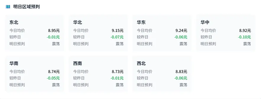 | 黑龙江 | 8.86 | | | ↗上涨 |