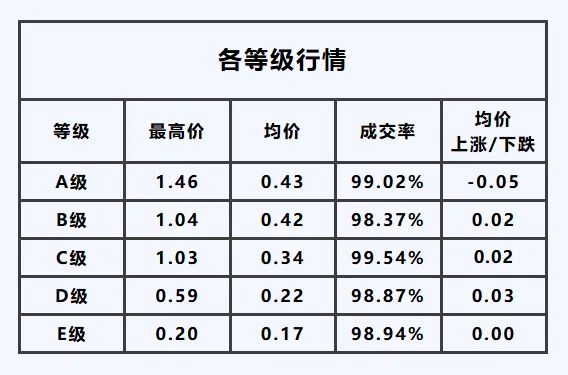 A级——最高价1.46元/枝,均价较昨日,下跌0.05元/枝;