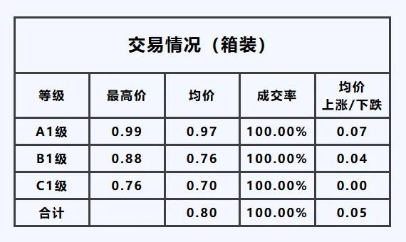 C1级——最高价0.76元/枝,均价较昨日,持平。