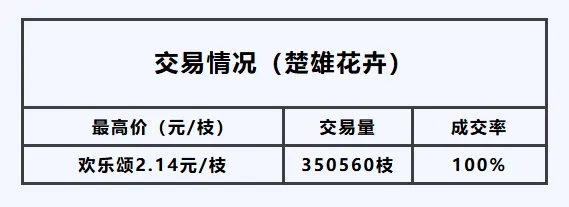 9日,楚雄花拍中心全渠道交易总量约为661140枝,今日交易量较前一交易日增加,总体购买力小幅上涨。成交率小幅上涨,交易情况如下: