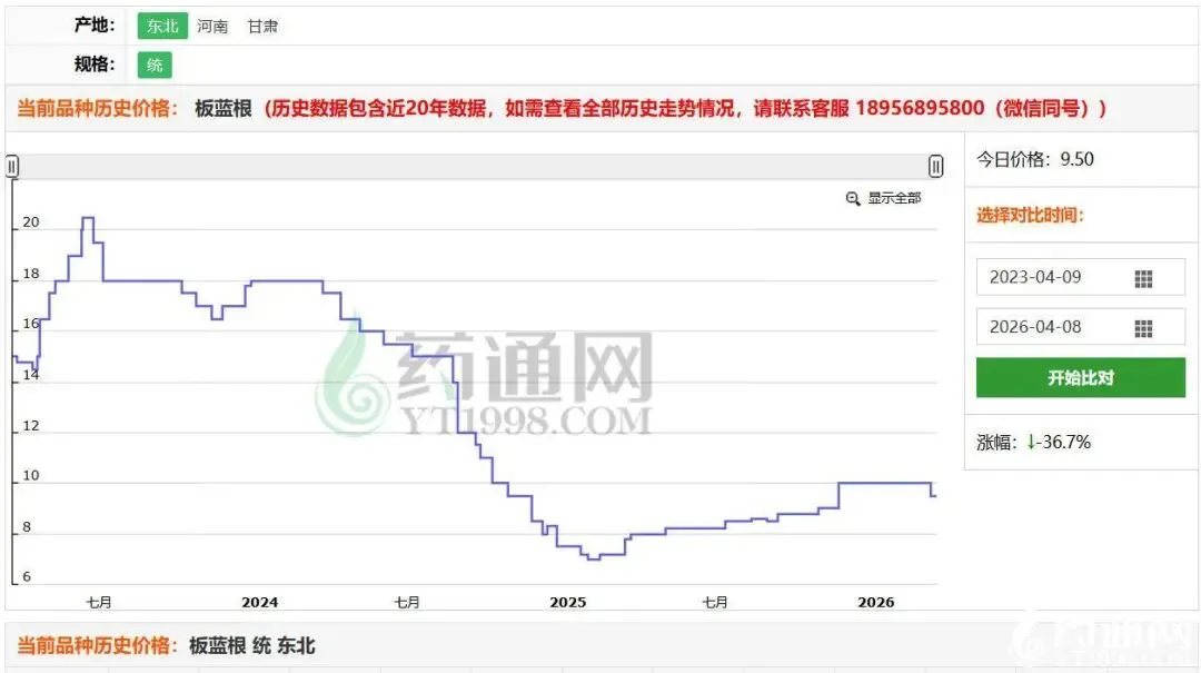 板蓝根兼具药用价值与市场刚需属性,是清热解毒类中药材的核心品种,常年为药厂、饮片厂的常规备货品类,市场需求相对稳定,也正因如此,其种植规模易受前期行情影响出现波动。回顾此前市场走势,板蓝根曾因阶段性行情向好,引发产区种植户扩种热情,种植面积大幅增加,直接导致市场库存积压严重,整体供应端呈现过剩状态。而需求端方面,此前特殊时期的抢购囤货现象已完全消退,下游企业回归理性采购模式,药厂、饮片厂均严格按需备货,市场需求趋于平稳甚至略有收缩,缺乏支撑价格上行的核心动力,供需失衡的基本面成为此次价格回落的关键诱因。