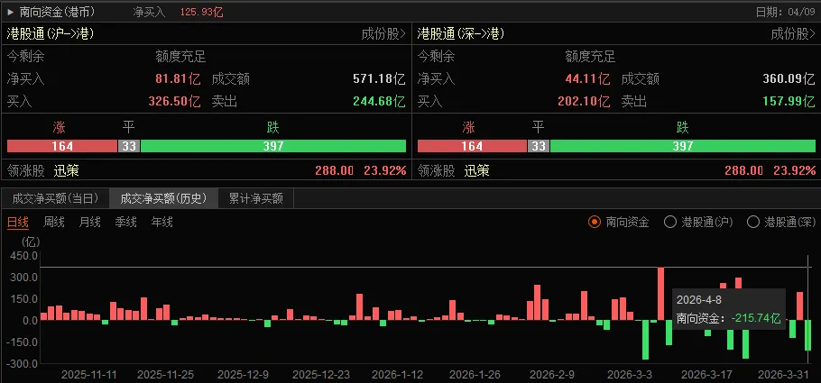 港股恒生科技今天下跌-2.06%。昨天大涨流出215亿,今天下跌流入125亿(如下图,来源:choice)。资金还是在做波段,并未明显看好港股趋势。但港股的AI模型(智谱、迅策等)走的相当强劲。即今天港A的科技都不弱,只不过A股硬件标的多,港股有A股稀缺的优质模型标的。所以科技的反弹还不能就说已经结束了。