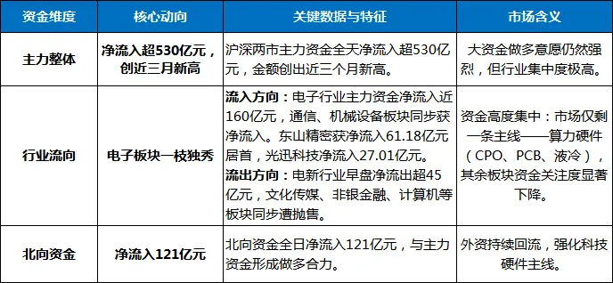 二、资金流向深度解析:主力聚焦电子,北向同步净流入