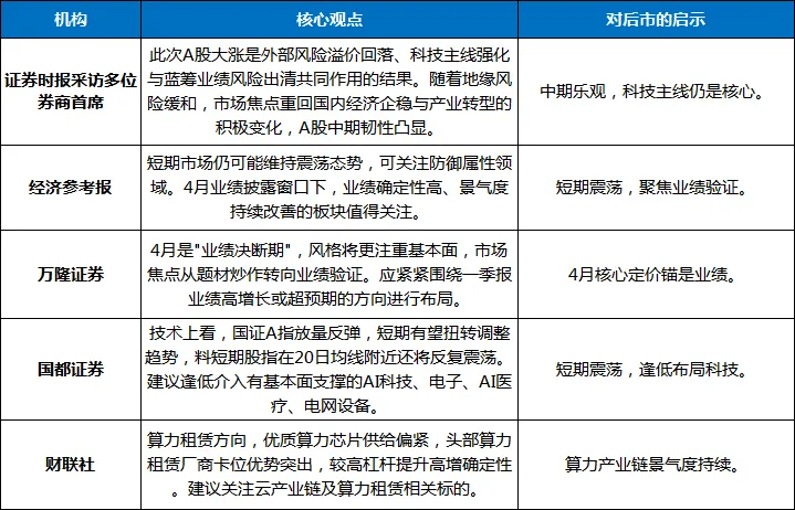 多家机构对当前市场格局给出研判,普遍认为市场中期韧性凸显,短期或维持震荡。