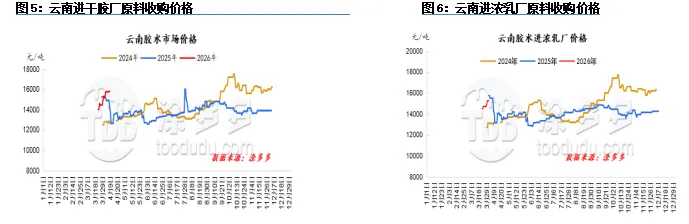 本周越南产区仍处于停割期,受持续干旱天气扰动,胶园土壤湿度不足,规模化开割条件尚未满足,试割工作也暂未落地,供应端预期持续收紧,目前加工厂成品库存处于低位,惜售情绪浓厚,现货市场有价无量。