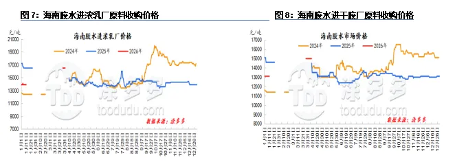 海南天然橡处于开割初期;当地大部分浓乳加工厂尚未开工,加工厂生产利润暂无。