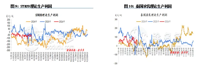 泰国STR20理论生产利润环比上期亏损扩大。周期内工厂杯胶采购价格重心继续上涨,叠加泰铢升值,工厂生产成本继续走高,需求端未见明显提振,泰国工厂高价成交困难,仅少量刚需成交,现货价格承压,泰标理论生产利润亏损环比扩大。