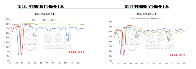 2、预计下周期轮胎样本企业开工率调整有限;