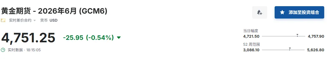 | 4726美元/盎司 | 开盘4714.83美元,日内最高4856.93美元(历史新高),最低4698.05美元,收盘4726.09美元,微涨0.24% |