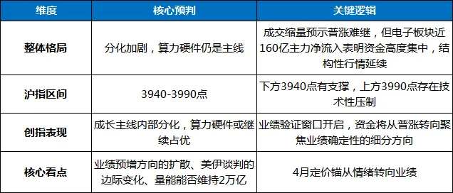 站在明日(4月10日)——业绩密集披露期正式开启、美伊谈判进入关键阶段、第三届AI算力产业大会进入第二天——的关口,我们给出以下核心预判: