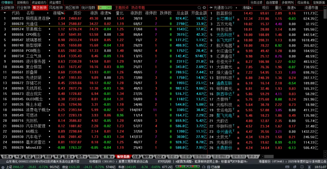 板块方面,元器件、石油、通信设备、工业机械、半导体、船舶等涨幅居前;旅游、互联网、日用化工、商业连锁、软件服务、酒店餐饮、医疗保健、证券等跌幅居前。