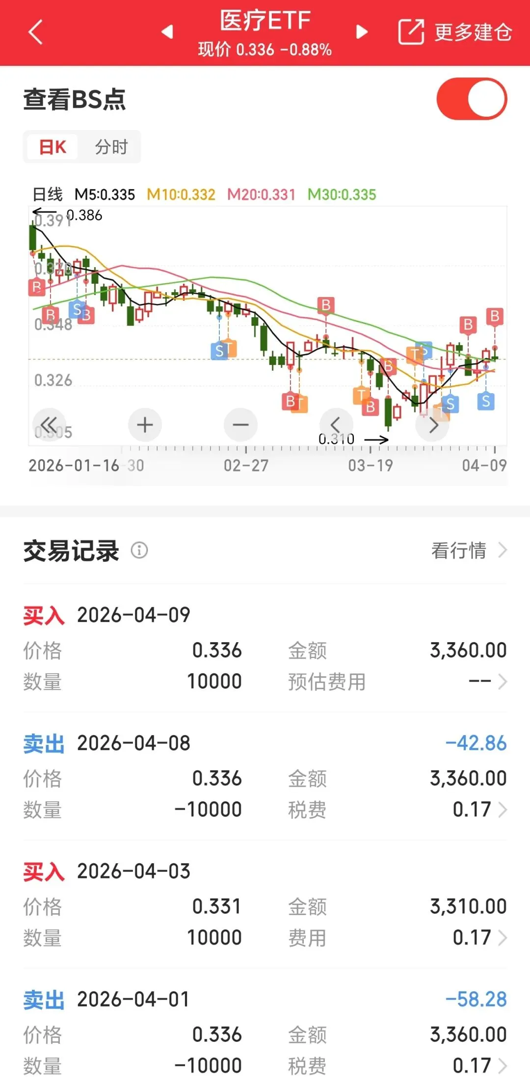 医疗目前持仓区间是60000-80000之间,目前还能买入两格,基准价是0.336,医疗跌了那么久,已经到底部了,这个价格只亏时间不亏钱。
