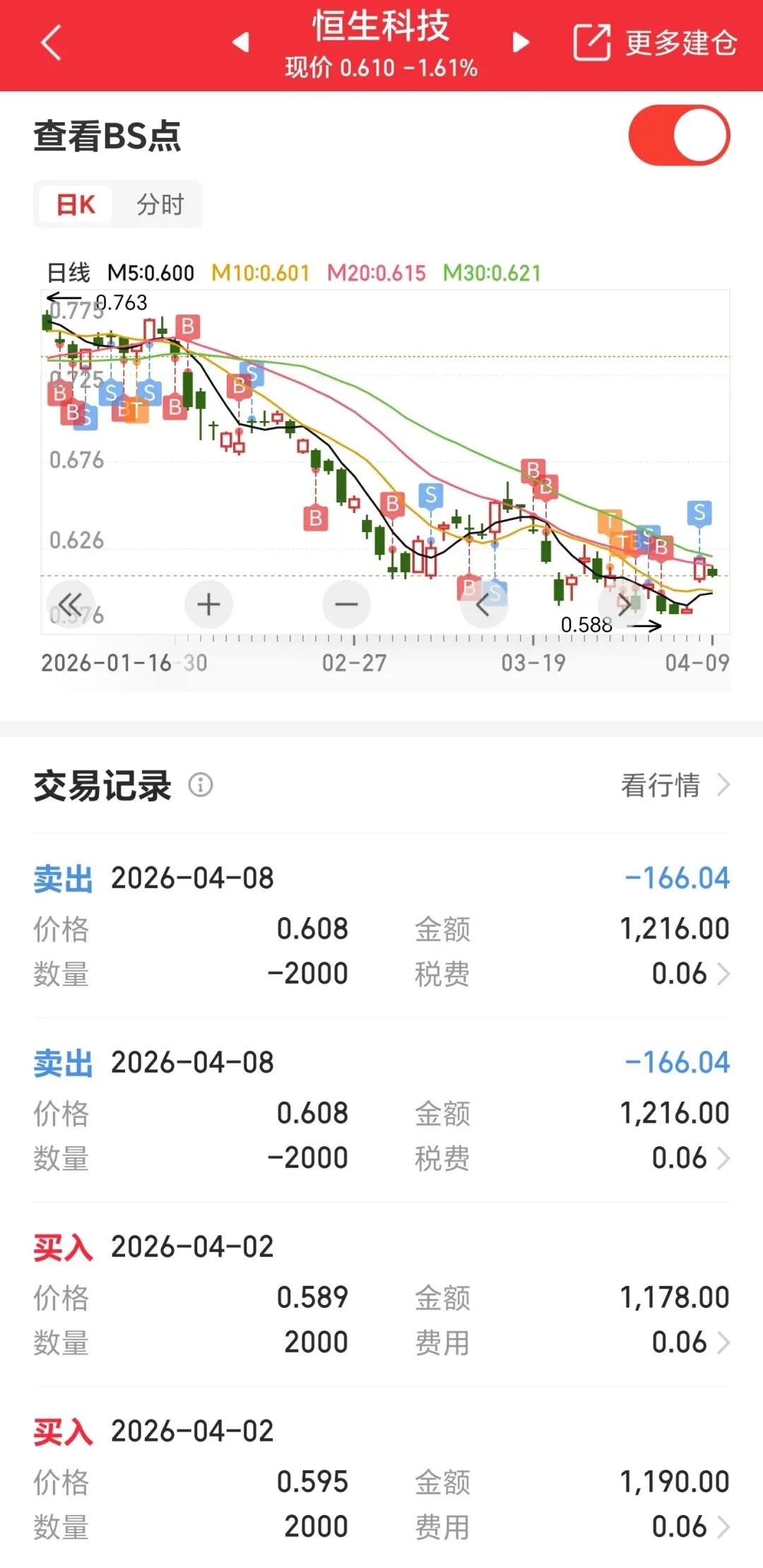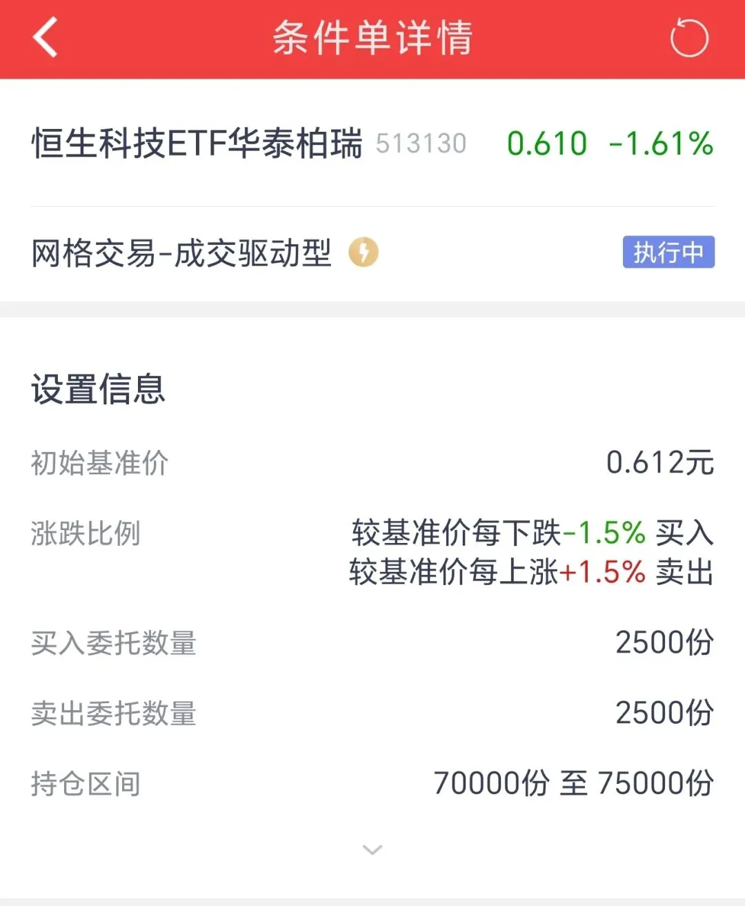 🏆🎁昨天高开后,我的恒生科技和医疗ETF两个网格都卖出了,恒生科技卖出两格,医疗卖出一格,算了下获利一百多点吧😂,卖出后又涨了不少,今天早上下跌的时候,我把网格调整了一下,今天医疗又买入了一次,如果晚上美股继续下跌,我估计明天恒生科技会继续买入。