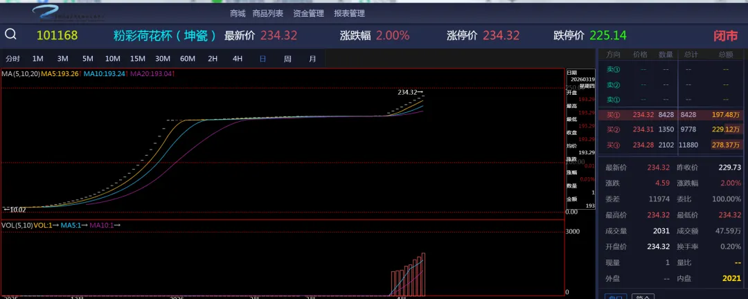 坤瓷101168在继续保持2个百分点的上涨幅度,涨停板成交趋于稳定。