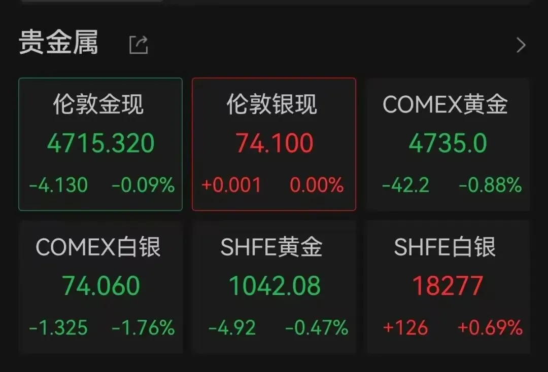 • 贵金属:黄金延续昨夜回落节奏,小幅收跌;白银直接暴走,单日大涨近2%,弹性拉满,终于等到这波久违的拉升!