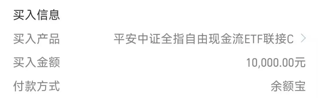 ① 平安中证全指自由现金流ETF联接C:加仓10000元
