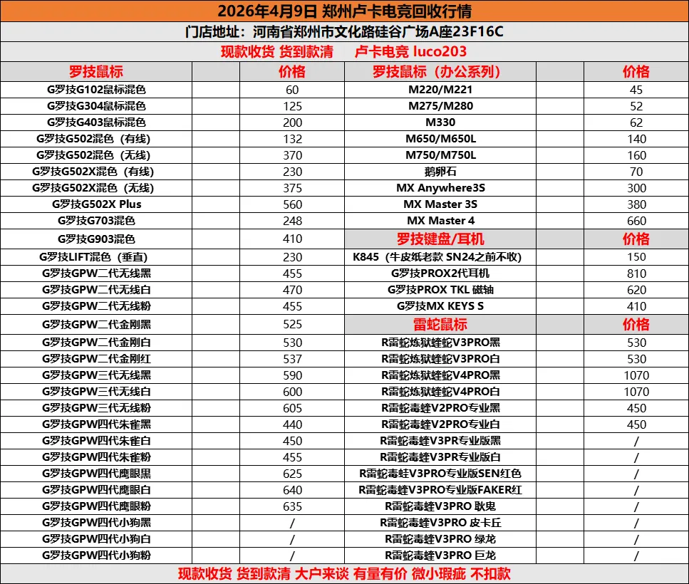 >2026年4月9日郑州电竞回收行情