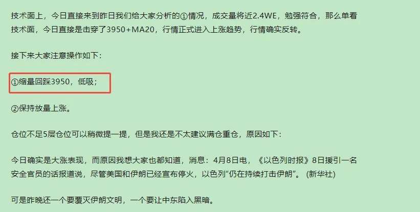技术面上,昨日我们就已经给大家预判了2个情况,最终走的是②今日为啥大幅度低开,我想大家也都知道,因为中东的局势真的是没人说的清,变数太多了。比如今日消息:伊朗驻巴基斯坦大使删除伊朗代表团将抵达伊斯兰堡的帖文伊朗驻巴基斯坦大使穆加达姆9日删除了他此前在社交媒体平台X上发布的关于伊朗代表团将于9日晚抵达巴基斯坦伊斯兰堡的帖文。穆加达姆此前发文说,尽管以色列屡次违反停火协议,但应巴基斯坦总理夏巴兹邀请,伊朗代表团将于9日晚抵达伊斯兰堡,就伊朗提出的10项停战条款展开严肃对话。(新华社)