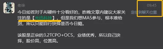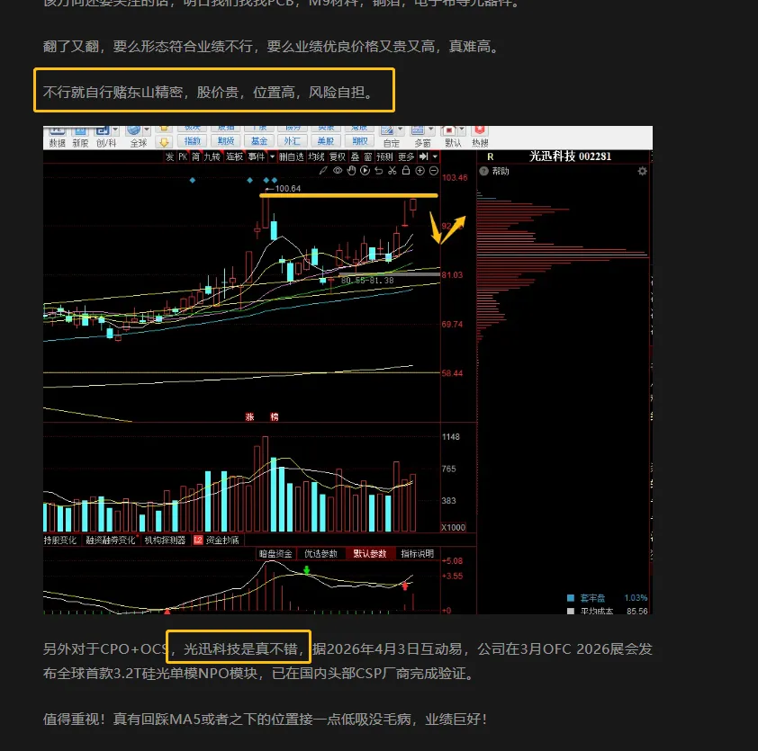 可别说昨晚文章内没写,而光迅科技昨晚文章内写了,但是买点给不到,只能实盘提醒激进赌了。