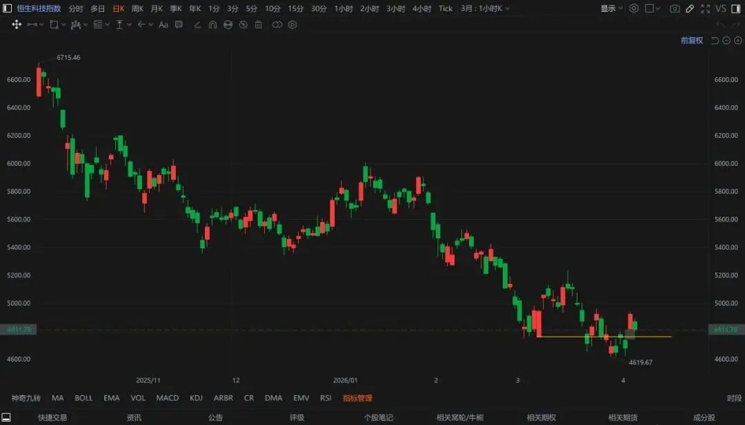 恒生科技今天又下来了