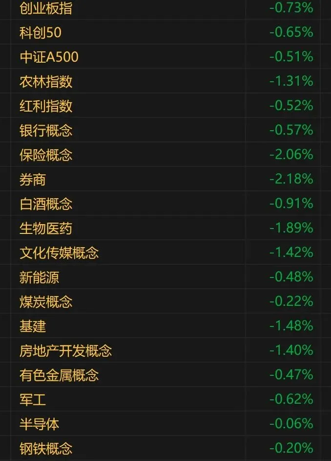 今天A股各板块又是一片绿油油